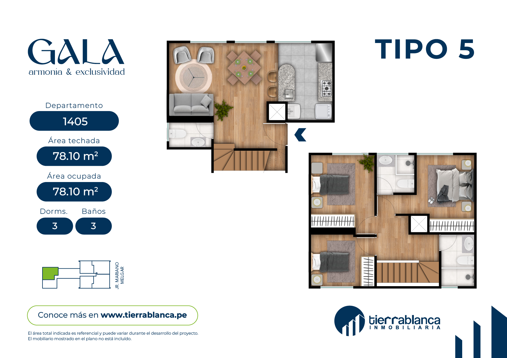 La textura arrolladora del rococho y la prestancia y minimalismo del cemento pulido le dan a la fachada de Gala carácter y personalidad. Su diseño arquitectónico moderno y sus formas armoniosas te encantarán desde el primer día.